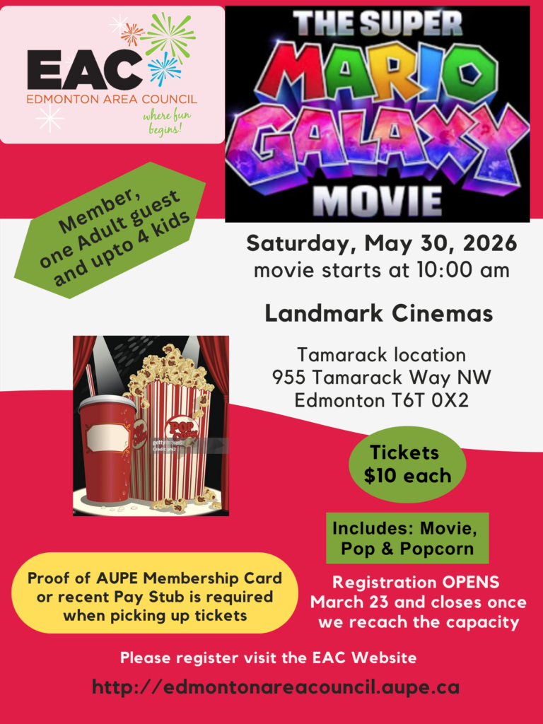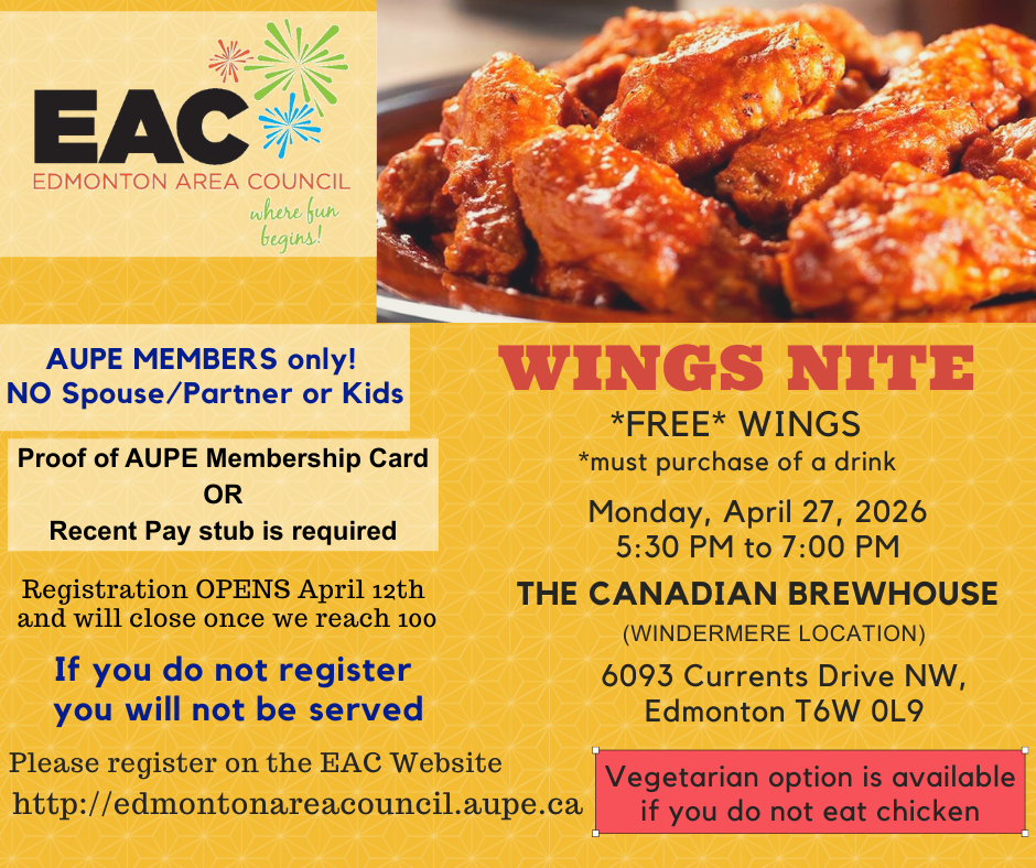 Events on this page are exclusive to Edmonton Area Council, AUPE Members Only!